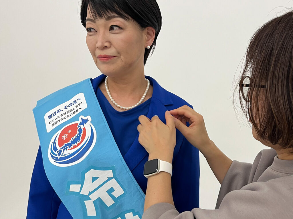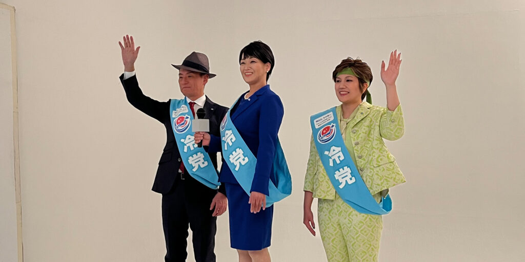 今回のコンセプトは、全国コールドチェーンプロジェクトの冷凍冷蔵物流をもじって「冷党」という架空政党の政治家になりきるというもので、普段とはまったく違う世界観に挑戦しました。