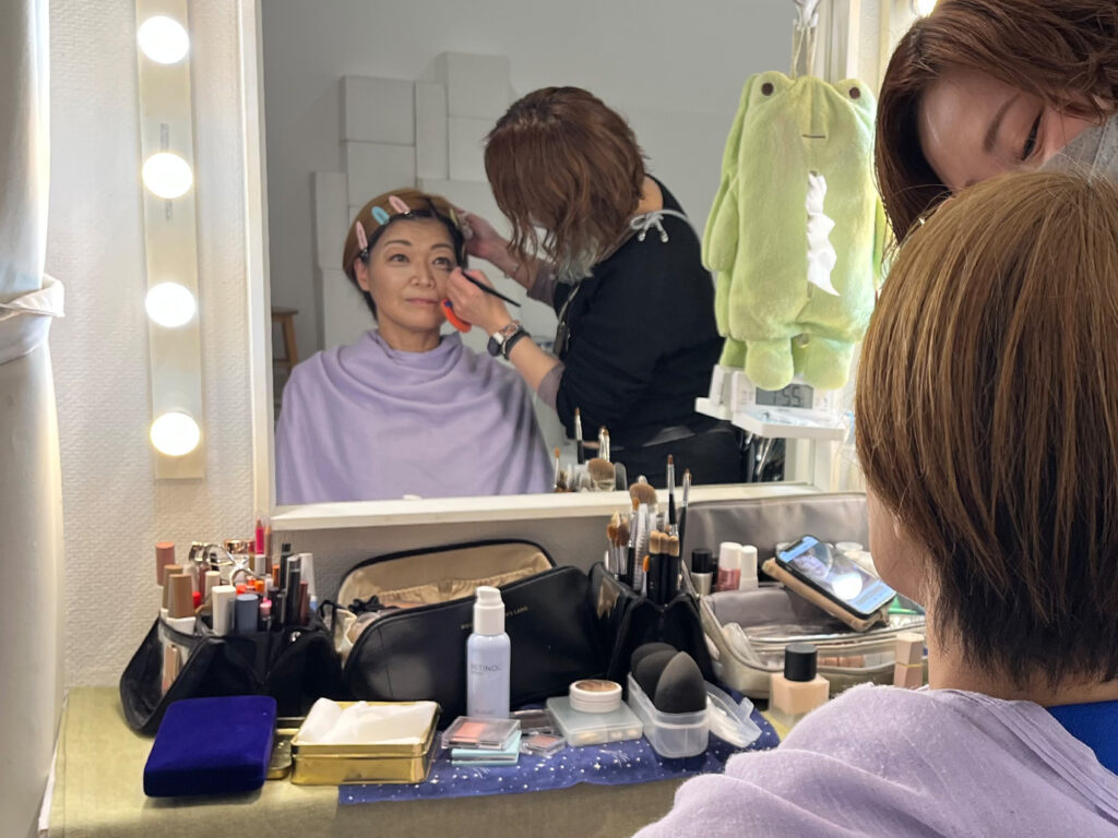 スタジオ入りすると、まずはメイクへ。プロの手によって、普段とはまったく違う表情が作られていきます。