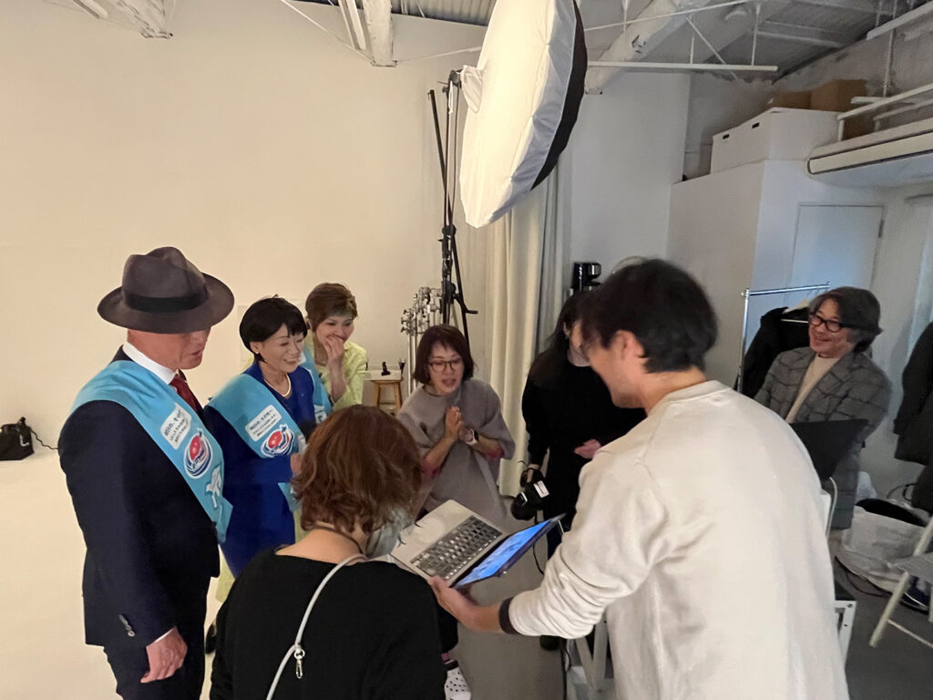 全員のメイクが完了すると、照明の調整、立ち位置、ポーズの確認を経て撮影本番へ。